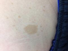お子さんは、カビの発疹がオムツかぶれに見られる事が多いですが、幼児になりますと、体の表面にカビの発疹が見られ、このような円形のカサカサした発疹を示してきます。