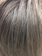 カサカサと白く乾燥したフケのような発疹が集中して見られています。